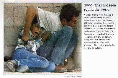 The video's been disgraced, but the image of Mohammed Dura remains a powerful symbol. An MSNBC slide show titled The Decade in Pictures includes this still. (It's picture 58 of 59):