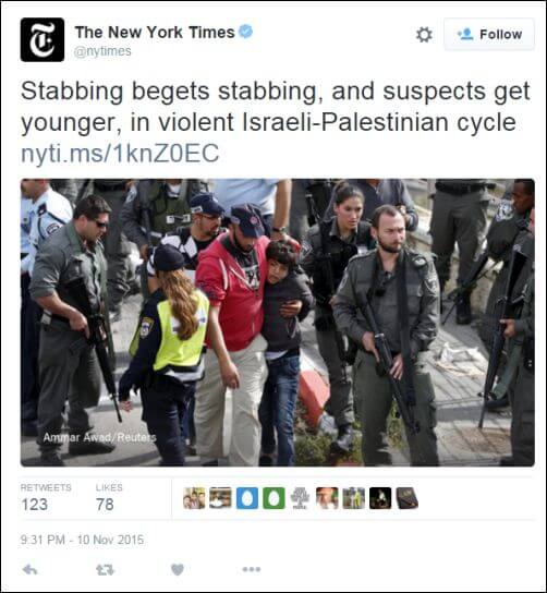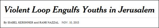 Now I’m told that Palestinian kids aren’t being incited to violence after all, and bear no responsibility for choosing to stab Israelis. The kids are just passively engulfed by violence, according to this New York Times headline.