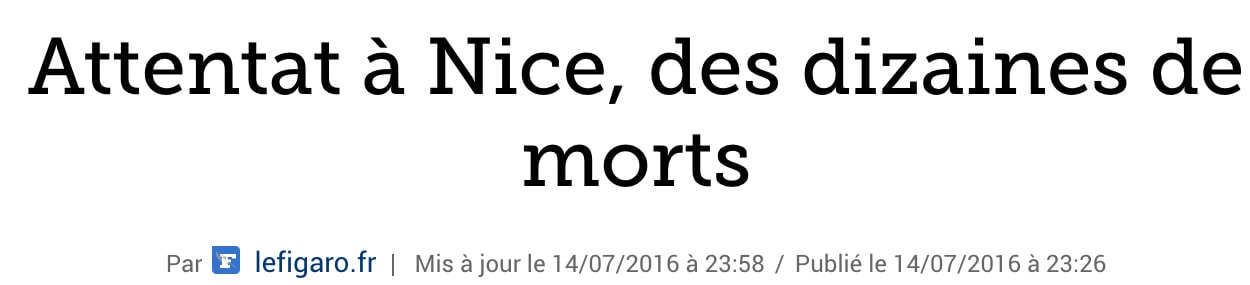 Nous nous souvenons tous du titre scandaleux que le Figaro avait choisi au moment de l’attentat au camion-bélier à Jérusalem :