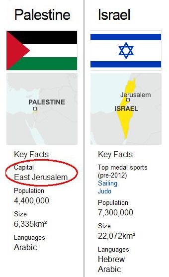 The BBC Sport website’s coverage of the forthcoming London Olympic games features country profiles of all of the competing nations. Every other country profile includes a listed capital city. All except for Israel. This even includes “Palestine” where the BBC takes enormous liberties with its list of facts.