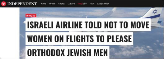 This headline is an astonishing in its selective omission: Israel’s national airline was not merely “told” to stop switching seats on flights, abandoning a procedure allowing Orthodox Jews to avoid immodest contact with individuals of their opposite sex. El Al was given a court order to comply with the doctrine of gender equality before the law. This was not a feeble bureaucratic decree but a forcibly-applying legal directive.