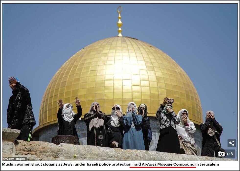 The series of photos on the Getty Images website is even titled: “Fanatic Jews’ raid Al-Aqsa Mosque Compound.”