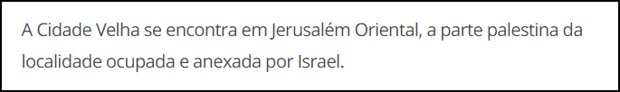 Uma frase um tanto confusa. Com aparente falta de vírgula, a matéria diz que Jerusalém Oriental é uma parte palestina que foi ocupada e anexada por Israel, o que não é correto.