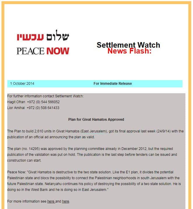 So Peace Now deliberately held off on releasing this press statement for a week when it knew it could achieve maximum traction in the press while at the same time causing a new headache for Netanyahu during his U.S. trip. And this despite the fact that the building in Givat Hamatos had been approved as far back as December 2012.