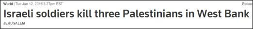 • Bungled headline of the day, courtesy Reuters: You have to read the article to find out that the first Palestinian tried to stab a soldier near Hebron, the second Palestinian was among Bethlehem rioters throwing firebombs at IDF soldiers, and — oops — there’s no mention of a third Palestinian. According to the Jerusalem Post, the third was also killed trying to stab soldiers in the Hebron area.