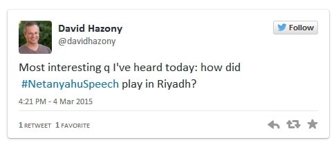 • After the speech, CNN’s Christiane Amanpour discussed Iran with Yuval Steinitz. My antennae twitched at 5:22 when Amanpour said to Steinitz that the speech didn’t say anything new. Steinitz’s response: