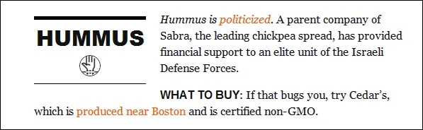 • Despite including Sabra hummus in a list of “morally squishy” foods, New York Magazine denied to The Algemeiner that it supports BDS.