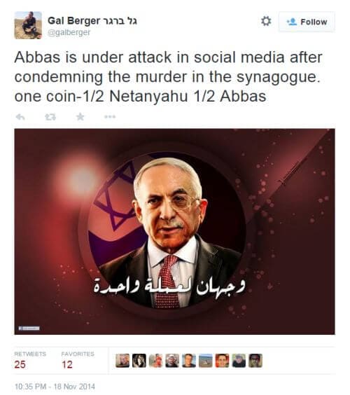• Mahmoud Abbas condemned the synagogue attack only because of international pressure. Hardly surprising; Khaled Abu Toameh points out that Abbas’s incendiary rhetoric is boomeranging on him: