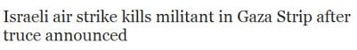 You have to read their articles to find out the militant was part of a group of terrorists preparing to launch rockets at Israel — after the truce went into effect.