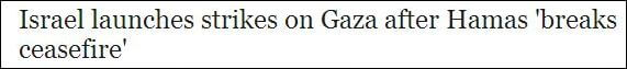 Or The Scotsman, which also gave equal billing to Israeli and Hamas responsibility for the ceasefire breakdown by headlining events as an “exchange of missiles”: