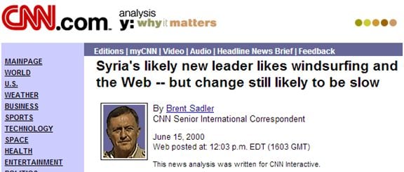 Cast your minds back to the year 2000 when Bashar al-Assad became president of Syria. Headlines such as this from the AP: