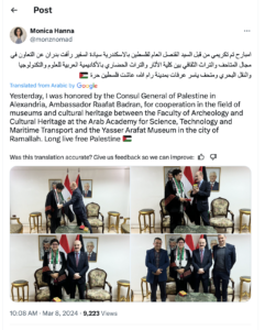 “The not-so-subtle use of the words ‘Syria’ and ‘Palestine’ is misleading and historically incorrect. She seems to be implying that ‘Palestine,’ and therefore, ‘Palestinians’ date back to at least this ancient period. As an Egyptologist and expert in cultural heritage, she should know better.”