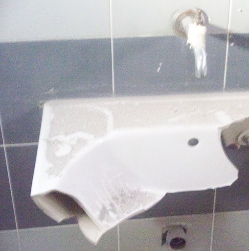 School sink and toilet stump blasted by Grad which entered from the roof
