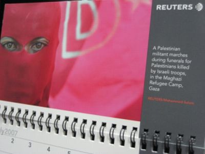 Recently, one website – Honest Reporting – suggested its readers send in responses to my posting on photo standards to raise the issue of Reuters 2007 calendar. The calendar became a topic of discussion because one month’s photograph was of a Palestinian militant. That photo stood out as most of the others selected for other months were of dancers, swimmers, performers or farmers…