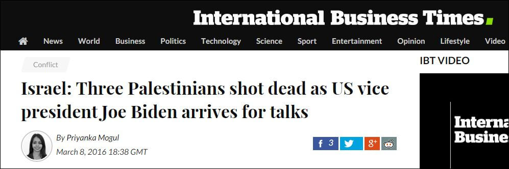 For The Irish Times, an American simply ‘died’ at the hands of, not a Palestinian terrorist, but a “Tel Aviv attacker,” while the sub-header made sure to give the impression that Palestinians had simply been shot dead without identifying them as the actual terrorist assailants: