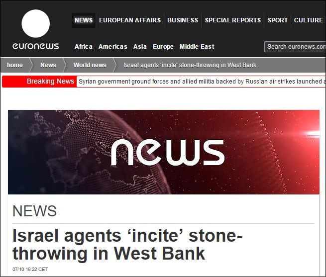 Some media such as Euro News also followed Baker’s lead by using his tweet as a credible source and making it the focus of its own story, writing: “A correspondent from Reuters news agency said he observed Israeli undercover agents disguised as Palestinian youths “inciting” stone throwing in Ramallah.”