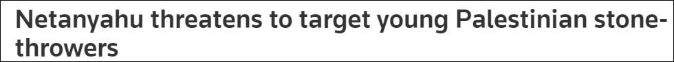 While Netanyahu has said: “The policy is zero tolerance for stone-throwing and zero tolerance for terrorism,” how does this translate into a threat to shoot Palestinian minors?
