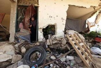 A Palestinian woman looks out of her damaged house in Beit Lahiya on the northern Gaza Strip October 25, 2010. (Reuters/Mohammed Salem)
