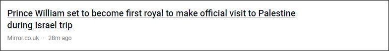 The BBC, Sky News and other media outlets across the UK shockingly omitted Israel from their headlines about Prince William’s visit, despite the future king being set to make the first official Royal Family visit to Israel. He will also be visiting Jordan and the Palestinian Territories, but in an example of blatant bias by the media, many headlines only highlighted his visit to the “Palestinian Territories.”