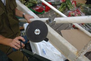 The photo above shows one of the electric saws used to saw metal rods off of the Marnara’s deck. These rods were used to attack the Israeli soldiers boarding the ship.