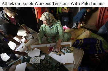 The selection of the Palestinian mother’s image with the article was an effort to achieve balance, but such an effort was not appropriate in this case, Ms. McNally said. In the print editions of the newspaper, the two photographs were published on an inside page with the Palestinian photograph above the other. On the website and in other digital presentations, the Palestinian photograph was by far the more dominant image and remains so.