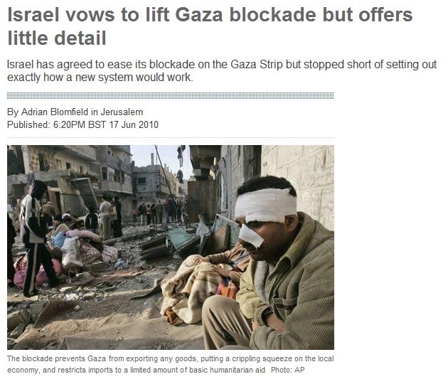 Although there is no humanitarian crisis in Gaza and even more aid is pouring in from Israel, the Telegraph’s photo gives the impression that Gaza is a warzone.