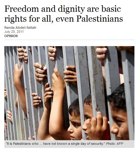 In fact it was just this exact photo that served as an illustration of how wire agency photographers resort to using camera angles and staging techniques to present a distorted (and worse) picture of a given situation. We showed, using a sequence of photos from the scene, how these Palestinian children were positioned behind a gate in a pre-planned photo-op in Gaza to give the impression of a prison.