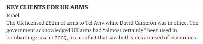 The Observer features a story on British arms sales in the Middle East. While it does not focus on Israel in the main text, it does list Israel as a client for UK arms: