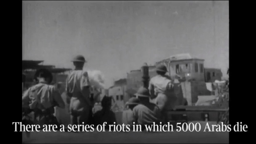 Again, with no proper context, the video states that increasing Jewish immigration sparks the Arab Revolt of 1936-39. It fails to mention that 5,000 Arabs died during this period due to British actions. There is also no mention of the 415 Jews killed by Arabs nor the fact that Arab riots also took place in the preceding period during the 1920’s, including the 1929 Hebron Massacre.