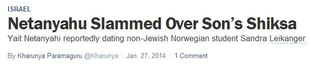 The non-Jewish Norwegian love interest of Israeli PM Netanyahu’s son Yair has piqued the interest of the Israeli press as well as some disapproving politicians. Some less than politically correct language has been used.