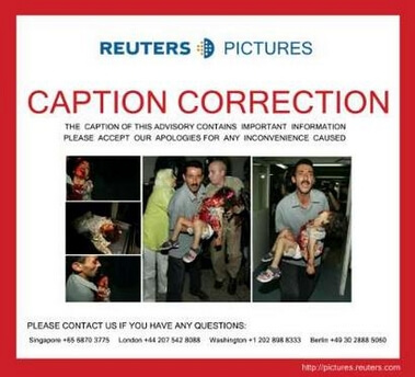 Further research revealed that the photo was taken in 2006 by Reuters, and that the girl, initially thought to have been killed in an Israeli air strike, was injured in a car accident. When confronted with this information, Alzeer stated that the photo was taken last night and forwarded to the press that day.