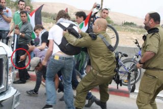 It’s apparently from the same protest that featured the IDF officer striking one of the protestors in the face with his gun. Some are claiming the protester is holding a knife in his hand.